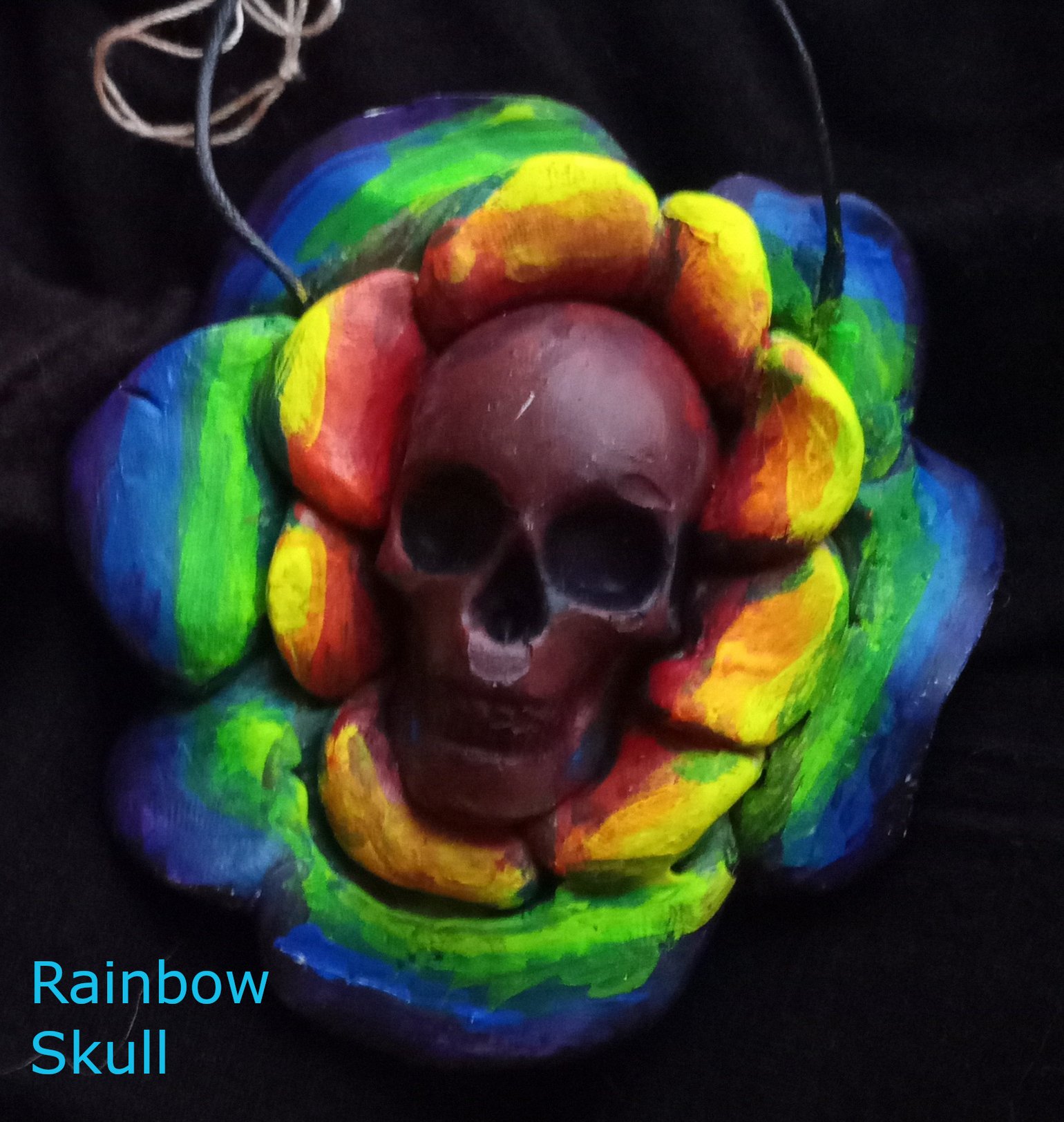 Hand made and all the flowers are one of a kind skull flowers that glow under UV/Black light. These skulls are made out of Apoxie Sculpt from Alves and painted with acrylics. There hanging ready and are close to 2 1/2'' by 2 1/2'' in size. Great pieces of art, for people who are lacking wall space!